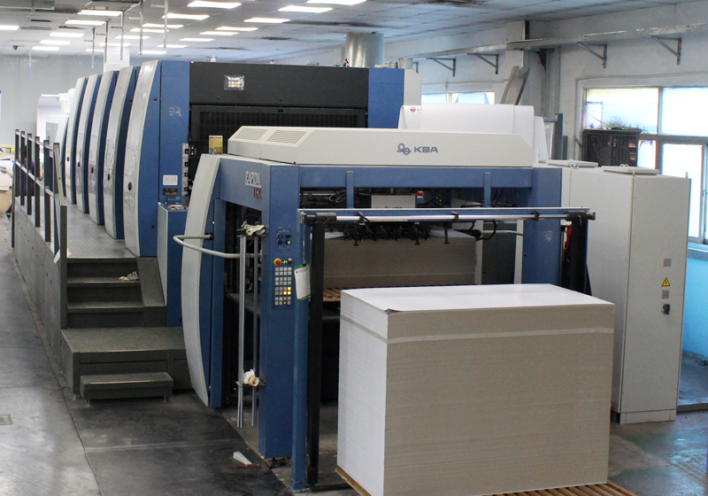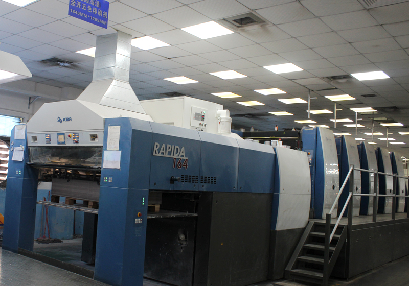 引進(jìn)德國羅蘭對開五色、羅蘭對開雙色、日本小森四開四色印刷設(shè)備,生產(chǎn)線完善